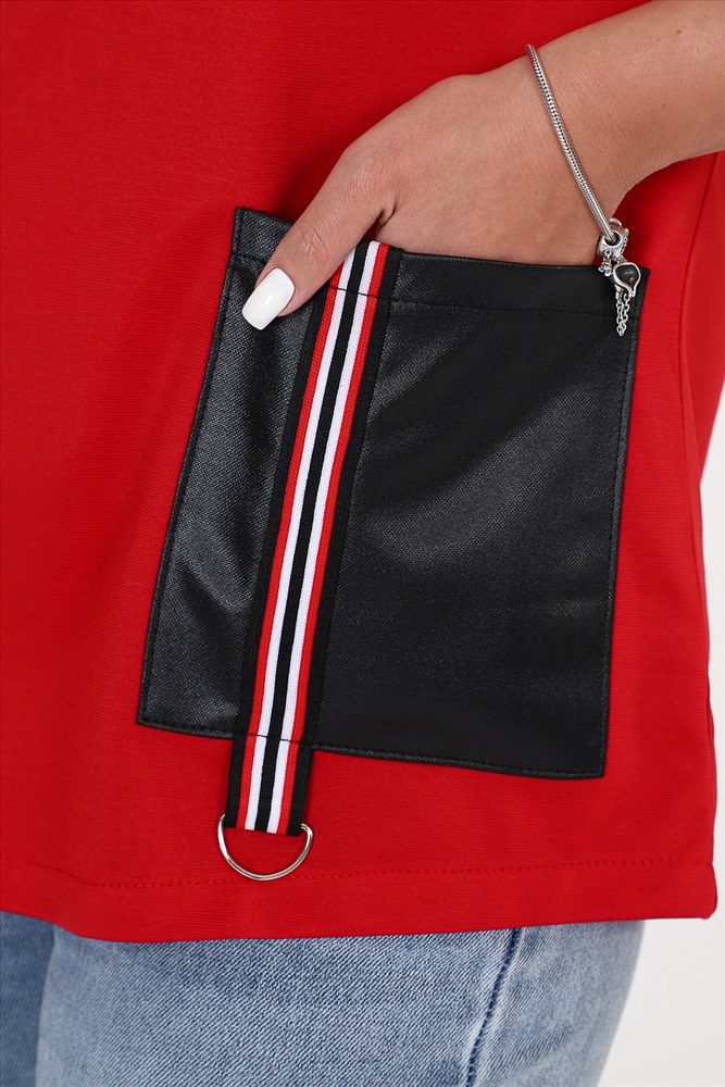 Накладной карман, также сделанный из черной отделочной ткани и отделанный тесьмой, является практичным и стильным дополнением. В этом кармане вы сможете хранить все необходимые мелочи, сохраняя при этом свой стиль и элегантность.