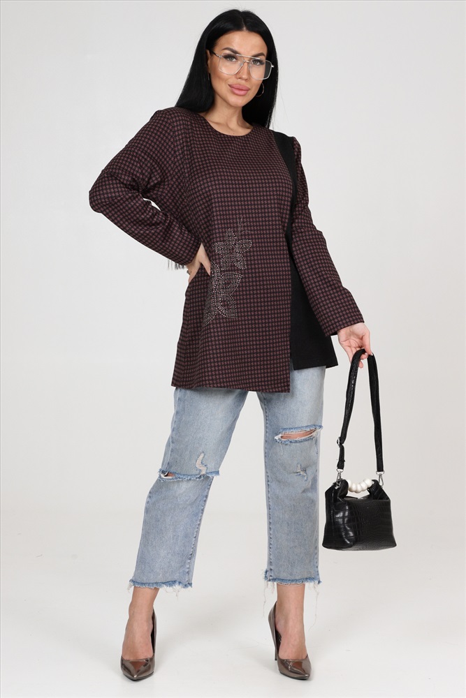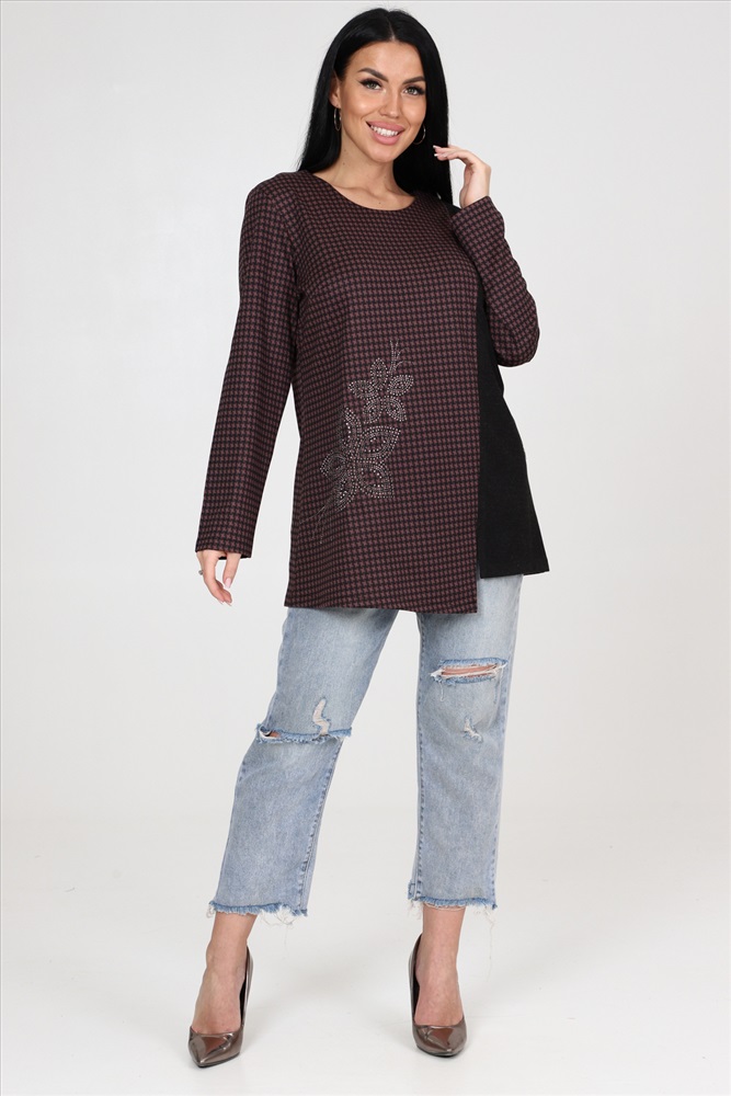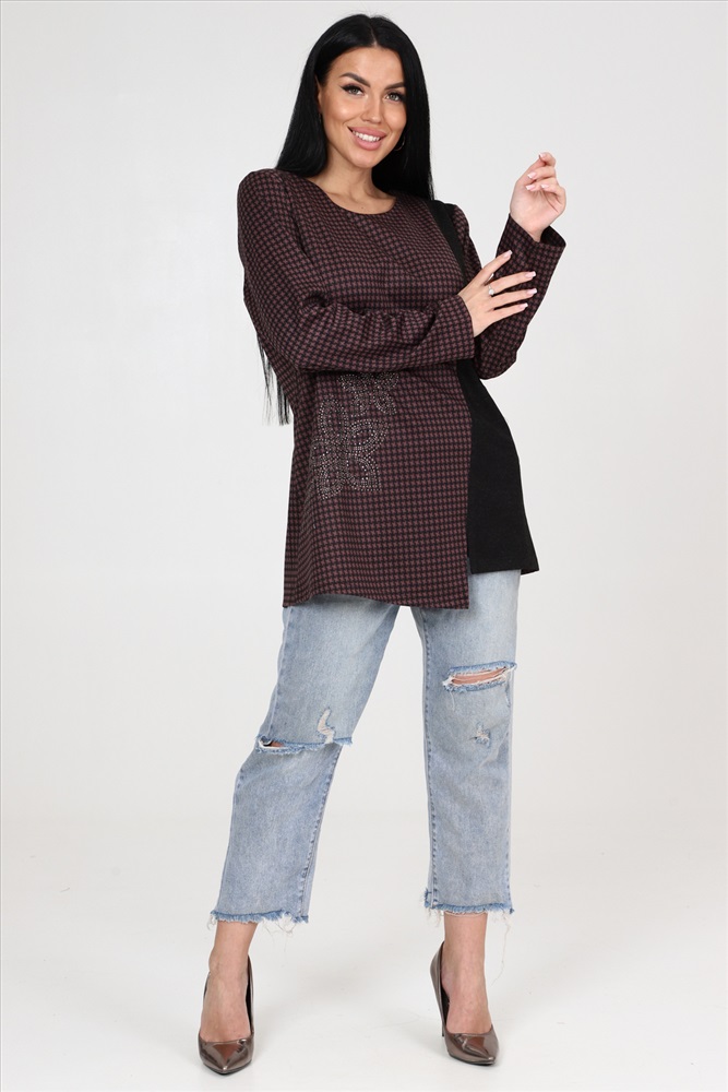 Состав: 95% полиэстер, 5% спандекс Модель: Туника женская 31812 Тип товара: туника Материал: водолаз | водолаз Бренд: Натали Суслова Карман: без карманов Отделка: со стразами Рисунок: клетка | цветы Рукав: длинный рукав Сезонность: осень | весна Силуэт: полуприлегающий Стиль: повседневный Воротник: без воротника Застежка: без застежки Приобретите стильную и приталенную тунику с округлой горловиной и длинными рукавами прямо сейчас! Изготовленная с использованием высококачественных материалов, туника сразу же привлечет внимание своей изысканной отделочной тканью на полочке, которая придаст ей уникальный шарм. На полочке украшены декоративные стразы, которые придают этой тунике блеск и элегантность. Комбинация приталенного кроя и разреза по низу обеспечивает не только модный вид, но также подчеркивает фигуру, делая ваш образ еще более привлекательным. Туника подходит для различных мероприятий от повседневных выходов до особых случаев. Она отлично комбинируется с джинсами, юбками или брюками, позволяя вам создавать уникальные и стильные образы для каждого случая. Таблица размеров и веса