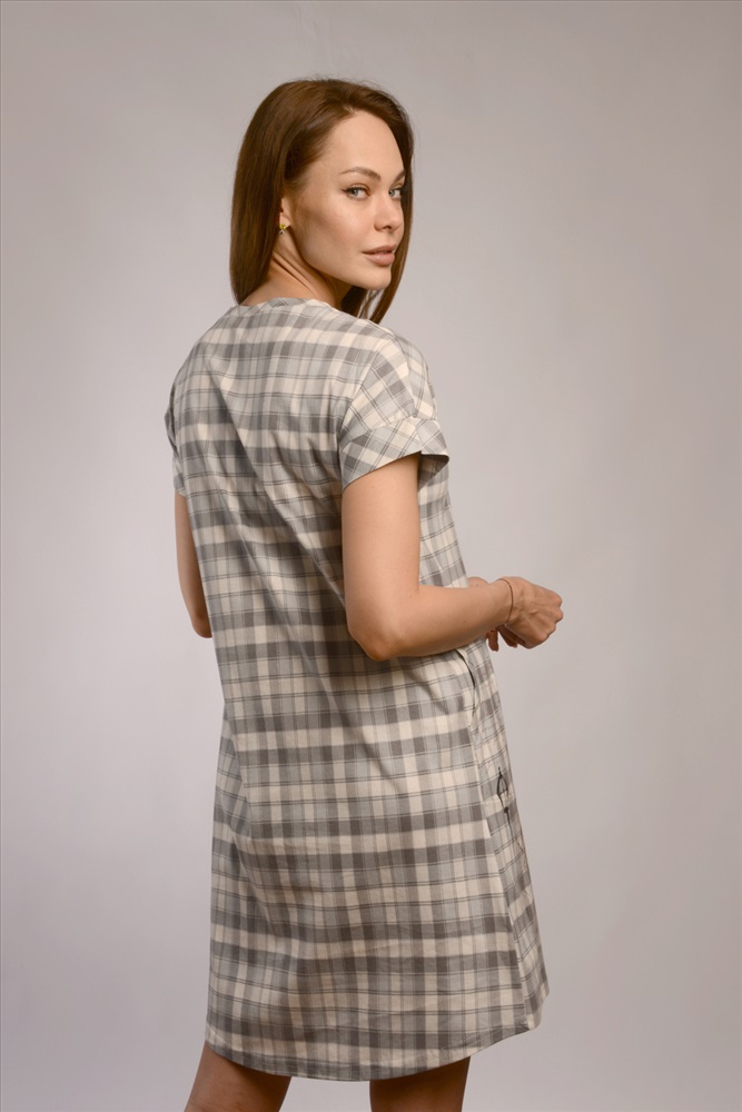 Состав: Хлопок 100% Модель: Туника женская ВОЯЖ Тип товара: туника Материал: кулирка | кулирка Бренд: Ивановская Трикотажная компания Карман: боковые Назначение: для дома Отделка: с карманами | с печатью Рисунок: клетка | разное Рукав: короткий рукав Сезонность: лето | осень | весна | зима Силуэт: полуприлегающий | свободный Стиль: домашний Воротник: без воротника Застежка: без застежки Домашняя свободная туника, слегка расширена к низу из мягкого трикотажного полотна, длина до колена с удлинением нижнего края на спинке, рукав спущенный цельнокроенный, полочка с V - образным вырезом, карманы внутренние в боковых швах. Таблица размеров и веса