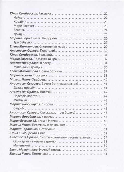 В сборник вошли добрые и веселые стихи и короткие истории для самых маленьких. Их сочинили замечательные современные авторы: Михаил Яснов, Марина Бородицкая, Юлия Симбирская, Анастасия Орлова, Марина Евсеева и другие. Книга с яркими смешными рисунками Ирины Августинович отлично подойдет для чтения малышам во время игр, прогулок или перед сном.