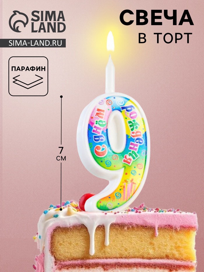 УЦЕНКА Свеча для торта «День рождения», 10,2 см, цифра 9