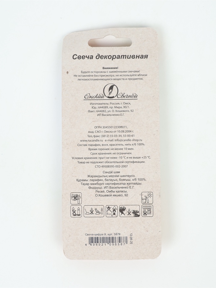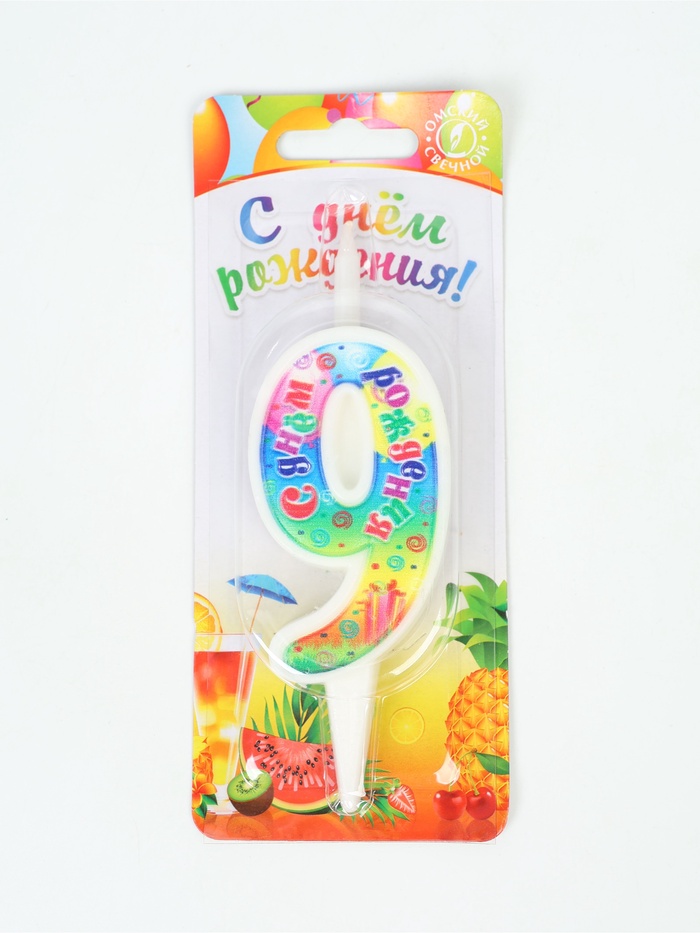 Производитель: Омский свечной завод; Габариты: 15,5 x 6,5 x 1,5; Страна: Россия; В боксе: 30 шт; Состав: Высокоочищенный пищевой парафин; Материалы: высокоочищенный пищевой парафин; Фасовка: по 1 шт; Индивидуальная упаковка: Блистер; Сертификат: Не подлежит сертификации; Причина уценки: нарушена упаковка; Набор: Нет; Цвет: Разноцветный; Для кого: Унисекс; В наборе, шт.: 1; Высота свечи без шпажки, см: 10,2; Высота свечи, см: 12; Форма свечи: Цифры; Цифра: 9; Состав: Парафин Мы собрали на одной странице классные коллекции свечей в торт. Каждая из них превратит угощение в эффектный десерт. Выбирайте подходящие по тематике или колористике праздника свечи и устраивайте фееричное торжество! Перейти к коллекциям свечей в торт. [122][122][122]