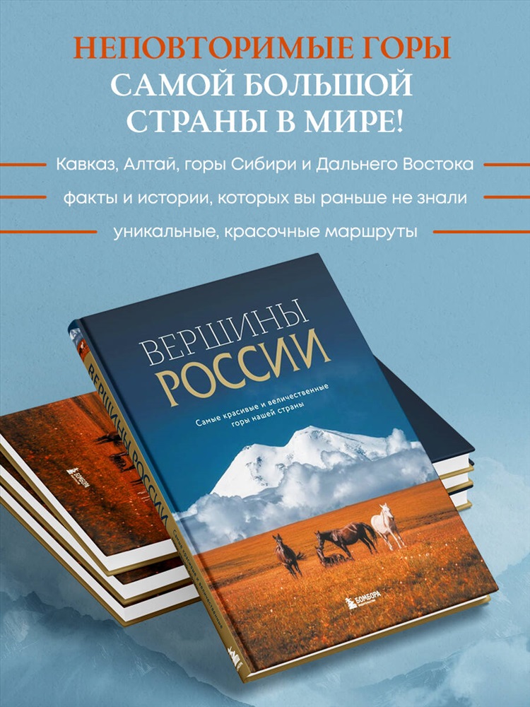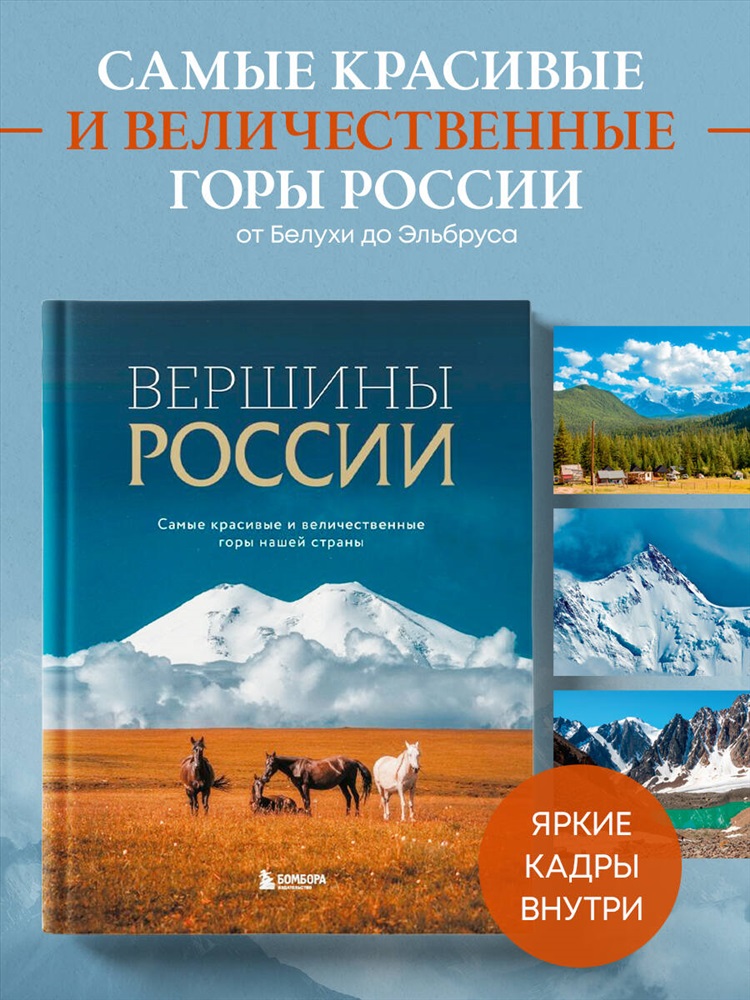 Книга «Вершины России. Самые красивые и величественные горы нашей страны» посвящена потрясающим горам, расположенным в самых разных уголках России — от Кавказа и Хибин до Урала и Дальнего Востока._x000D_