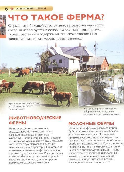 Эта книга познакомит с фермами разного направления и их четвероногими и пернатыми обитателями. Читатель получит много интересной информации о разных сельскохозяйственных животных, их породах, об уходе за ними и о продукции, которую мы от них получаем. Страницы издания оживляют красочные рисунки и фотографии, что делает чтение еще более познавательным и увлекательным.