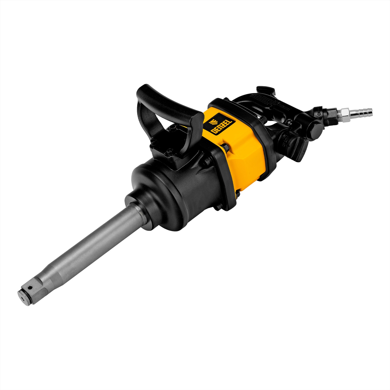 Ударный пневмогайковерт Denzel IW2600 57490 с присоединительным квадратом 1" обеспечивает скорость вращения вала 4000 об/мин и развивает крутящий момент до 2600 Нм. Предназначен для монтажа и демонтажа резьбовых соединений. Алюминиевый корпус выдерживает высокие нагрузки, инструмент подходит для профессионального использования. Преимущества