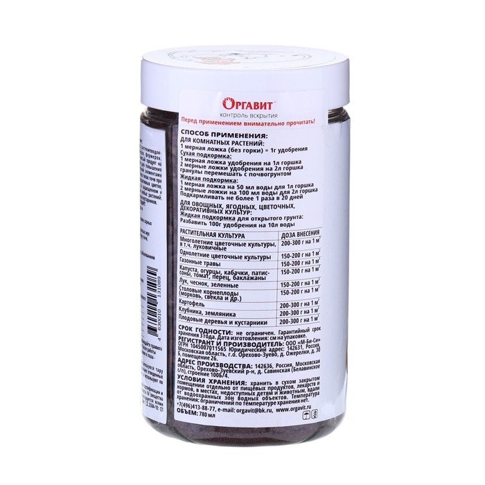 Производитель: Оргавит; Габариты: 9 x 9 x 15,5; Страна: Россия; В боксе: 12 шт; Состав: См. на упаковке; Материалы: см. на упаковке; Фасовка: по 1 шт; Индивидуальная упаковка: Банка пластмассовая; Сертификат: Не подлежит сертификации; Область применения: Универсальные; Происхождение: Органические (природное); Препаративная форма: Гранулы; Вид: Удобрения; Состав (действующее вещество): Азот, Калий, Фосфор, Кальций; Периоды применения: Лето, Весна; Комплексные удобрения: Да; Класс опасности: 3 класс (умеренно опасные); Группы элементов: Макроудобрения; Эффект: Увеличение урожая; Меркурий: Да