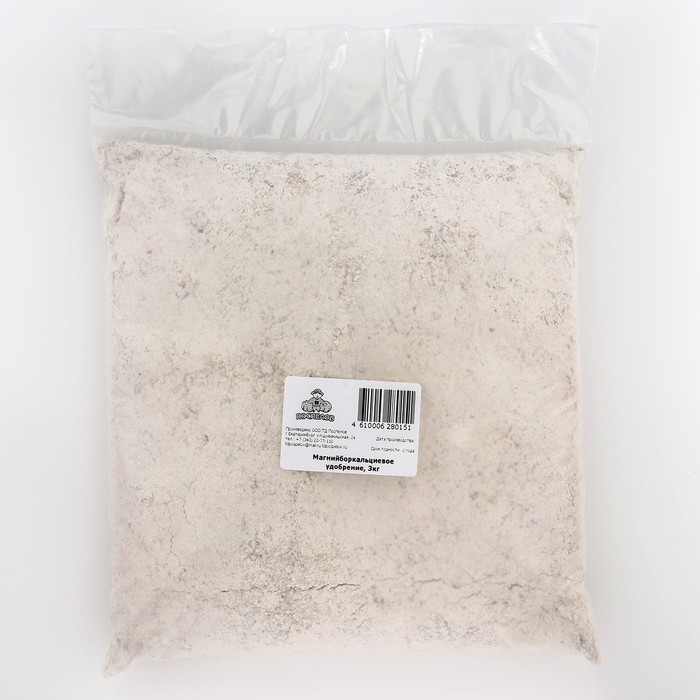Магнийборкальциевое Удобрение предназначено для ускоренного окультуривания и повышения плодородия кислых почв, обеспечения растений бором, магнием и кальцием; предотвращения поступления из почвы в растения тяжелых металлов, остатков гербицидных и других вредных веществ.Магнийборкальциевое Удобрение применяется вместе с азотными, фосфорными, калийными, органическими и другими удобрениями и: устраняет избыточную кислотность и улучшает структуру почвы; обеспечивает растения в оптимальном отношении бором, магнием, кальцием и повышает коэффициент использования других удобрений; снижает в 5-6 раз заболеваемость свеклы гнилью сердечника, капусты килой, картофеля паршой, корнеплодов серой гнилью и т.д.; повышает урожай капусты на 9-15%, моркови на 9-12%, свеклы на 6-28%, картофеля на 7-15% и т.д.; существенно повышает качество продукции (увеличивается содержание витаминов, каротина, Сахаров, крахмала, снижается содержание нитратов); повышает лежкость продукции на 4-9%.Способ применения:Удобрение вносят один раз на 4-5 лет под перекопку весной или осенью. Доза удобрения зависит от типа и кислотности почвы и составляет в кг/10 м2. Супесчаная и легкосуглинистая почва, кг/10 м2: Кислотность почвы, рН менее 4,5 - 4,0 кг. Кислотность почвы, рН 4,6 - 3,5 кг. Кислотность почвы, рН 4,8 - 3,0 кг. Кислотность почвы, рН 5,0 - 2,5 кг. Кислотность почвы, рН 5,2 - 2,0 кг. Кислотность почвы, рН 5,4 - 1,5 кг. Кислотность почвы, рН более 5,6 - 1,0 кг. Средне- и тяжелосуглинистая почва, кг/10 м2: Кислотность почвы, рН менее 4,5 - 6,5 кг. Кислотность почвы, рН 4,6 - 6,0 кг. Кислотность почвы, рН 4,8 - 5,5 кг. Кислотность почвы, рН 5,0 - 5,0 кг. Кислотность почвы, рН 5,2 - 4,5 кг. Кислотность почвы, рН 5,4 - 4,0 кг. Кислотность почвы, рН более 5,6 - 3,0 кг.Удобрение вносят в безветренную погоду. После внесения Магнийборкальциевого Удобрение рекомендуется ежегодная смена культур, например, в последовательности капуста - морковь - свекла - картофель. Затем очередная обработка Магнийборкальциевое Удобрение.При внесении Удобрения в небольшой объем почвы в домашних условиях смешение проводят вручную, а примерная доза удобрения соответствует 1,0- 1,5 г на 1 литр почвы для супесчаных и легкосуглинистых или 2- 3 г на 1 л для средне- и тяжелосуглинистых почв.Срок хранения в упакованном виде 5 лет. Срок агрохимической годности не ограничен.