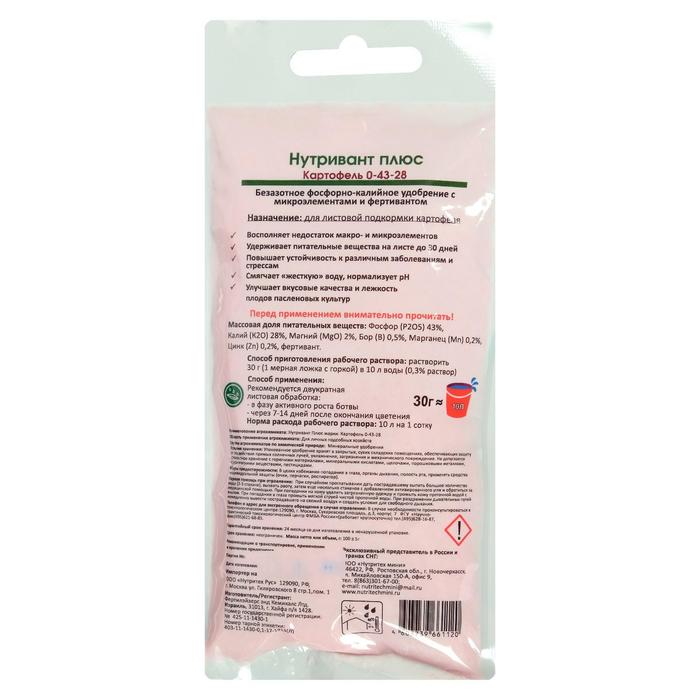Удобрение «Нутривант Плюс» Картофель 0-43-28, профессиональное,100 г