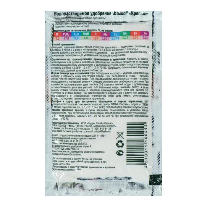 Производитель: Фаско; Габариты: 2 x 8 x 13; Страна: Россия; В боксе: 50 шт; Состав: См. на упаковке; Материалы: см. на упаковке; Фасовка: по 1 шт; Индивидуальная упаковка: Без упаковки; Сертификат: РСТ; Область применения: Для рассады; Происхождение: Органические (природное), Минеральные (неорганические); Препаративная форма: Сухая смесь; Вид: Удобрения; Состав (действующее вещество): Калий; Периоды применения: Круглогодичные; Комплексные удобрения: Да; Класс опасности: 3 класс (умеренно опасные); Группы элементов: Макроудобрения; Эффект: Увеличение урожая; Вес/Объём: 50 г
