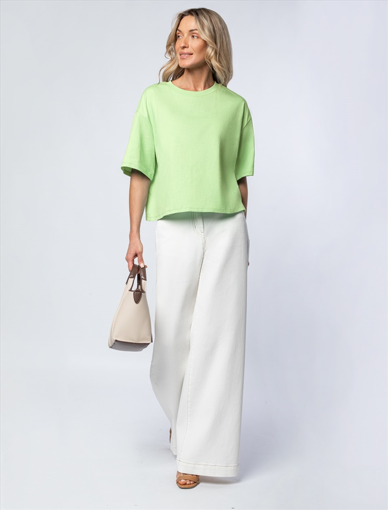 Состав: 100%Хлопок Базовая футболка из 100% хлопка. Укороченная модель свободной посадки идеально впишется в повседненвый гардероб. Изделие хорошо держит форму и обеспечивает комфортный микроклимат в течение дня.