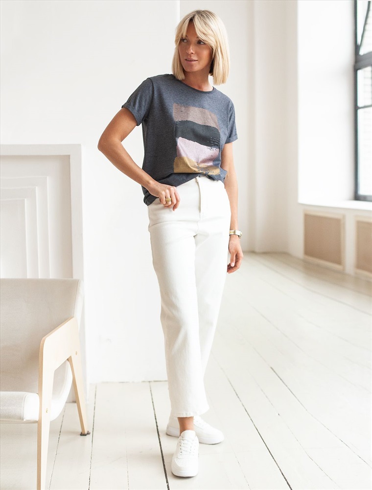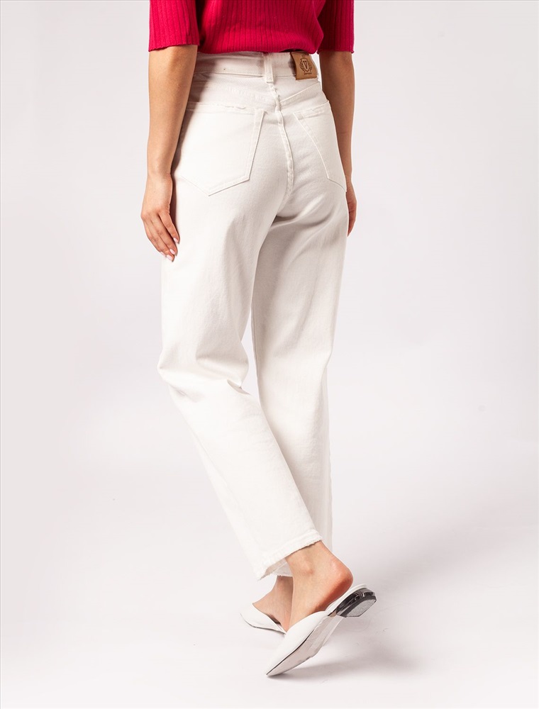 Белые джинсы из плотного прочного хлопка с добавлением нитей эластана. Укороченная модель изящно открывает лодышки. Высокая посадка грамотно подчеркивает силуэт. Данная модель легко и безупречно поможет составить модный образ вместе с трикотажным поло, свободной блузкой взаправку, футболкой или жакетом.