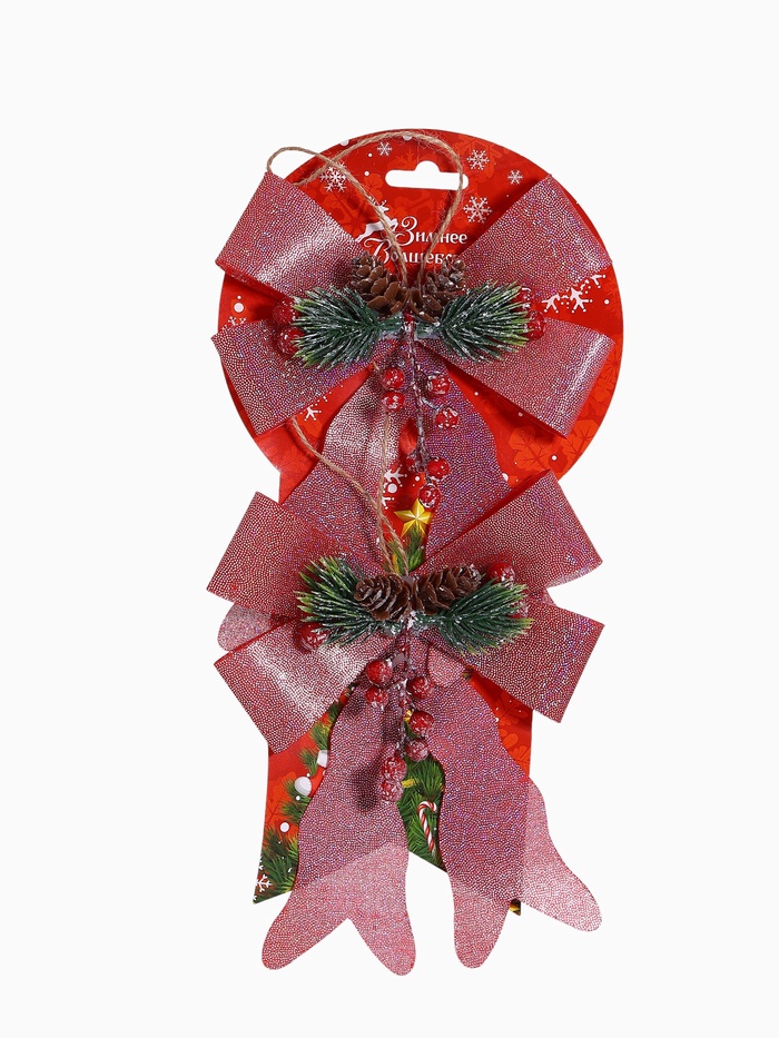 Ёлочные игрушки 2 шт. «Зимнее волшебство. Бант элит» пластик, 12×14 см, розовый