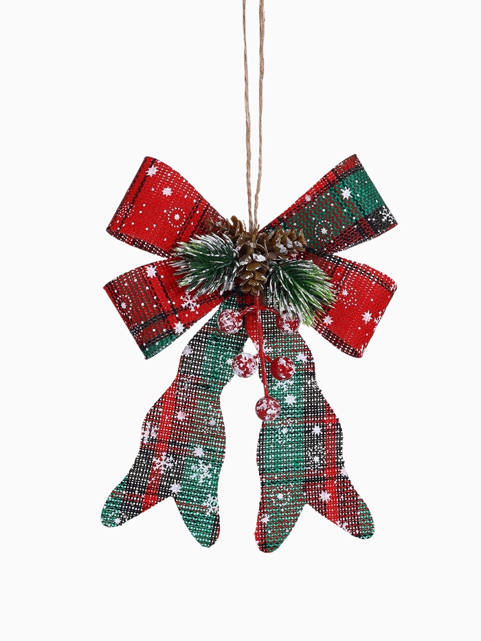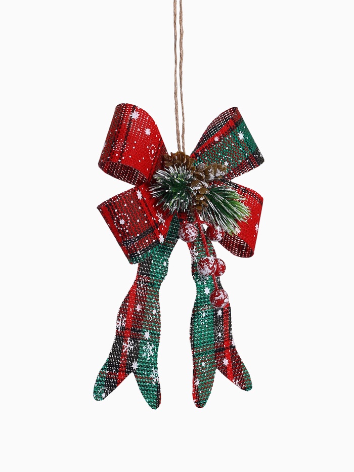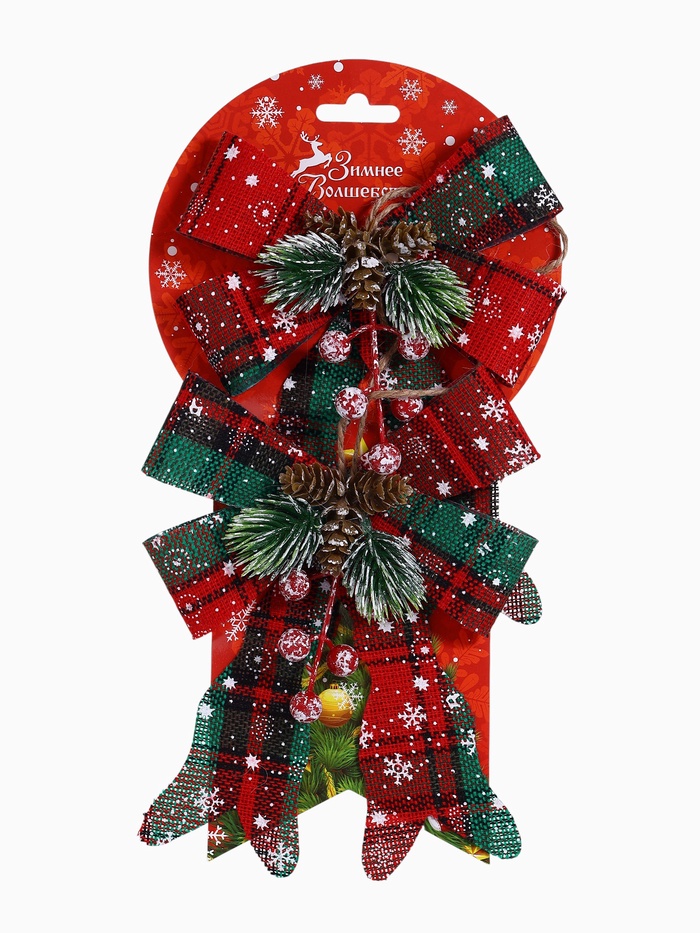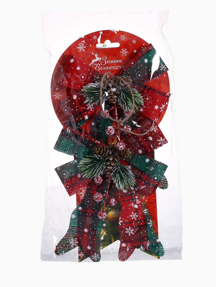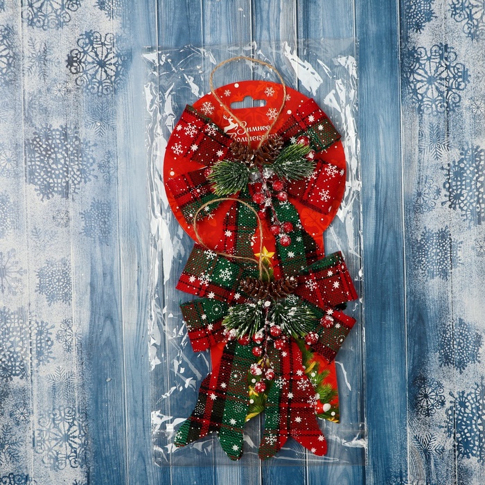 Ёлочные игрушки 2 шт. «Зимнее волшебство. Бант» пластик, клетка, 12×14 см, красный