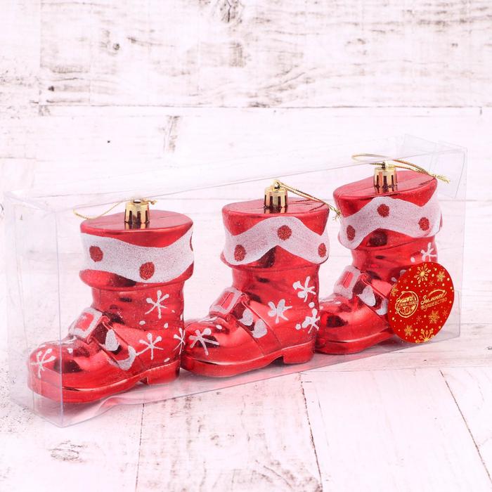 Ёлочные игрушки 3 шт. «Ботинок», 8×8 см, бело- красный