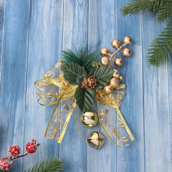 Ёлочная игрушка «Зимнее волшебство. Новогодний стиль» пластик, бант прозрачный, 16×12 см, золото