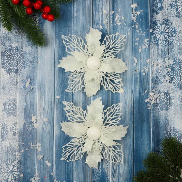Создайте зимнюю сказку на елке – белые резные цветы в стиле классики и ар-деко для новогоднего декора! Белые новогодние цветы – набор из 2 игрушек, сочетающих строгость классики, минимализм Скандинавии и графичность ар-деко. Их высота – 15 см, что делает акцент заметным, но не перегружает композицию.