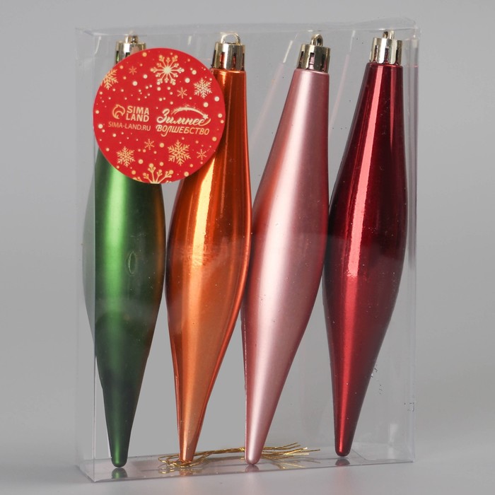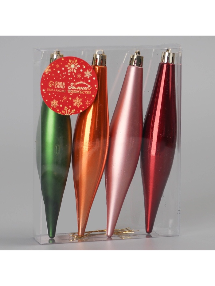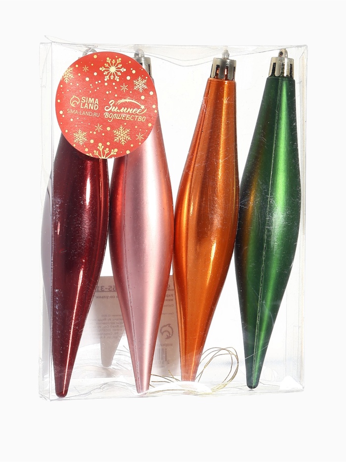 Праздник начинается с первой сосульки и её яркого цвета Этот набор делает дом частью вашей истории о подарках, зимнем волшебстве и добром ожидании чуда. Микс оттенков и простая форма работают вместе, чтобы передать дух Нового года и тёплое предпраздничное настроение. Используйте их как центральные элементы или рядом с другими украшениями — одинаково мягко усиливая атмосферу торжества и зимнюю гармонию. КомплектацияНабор - 4 штуки. Комментарии к товару