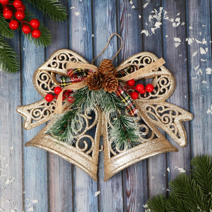 Габариты: 28 x 21 x 6,5 Страна: Китай В боксе: 120 шт Состав: Дерево, пластик Материалы: дерево, пластик Фасовка: по 1 шт Индивидуальная упаковка: Пакет Сертификат: Не подлежит сертификации Набор: Нет Цвет: Золотистый Символ года: Нет Материал: Пластик Стиль: Шебби-шик, Новогоднее барокко, Классика, Ар-деко Новогоднее украшение «Колокольчики с ягодками» — это стильный и теплый акцент для праздничного декора. Изделие размером 25×18 см выполнено в форме колокольчика с элементами, напоминающими ягоды, и оформлено в золотистой гамме. Украшение подходит как для ёлки, так и для интерьера, сочетая в себе черты ар-деко, классики, новогоднего барокко и шебби-шик. Особенности
