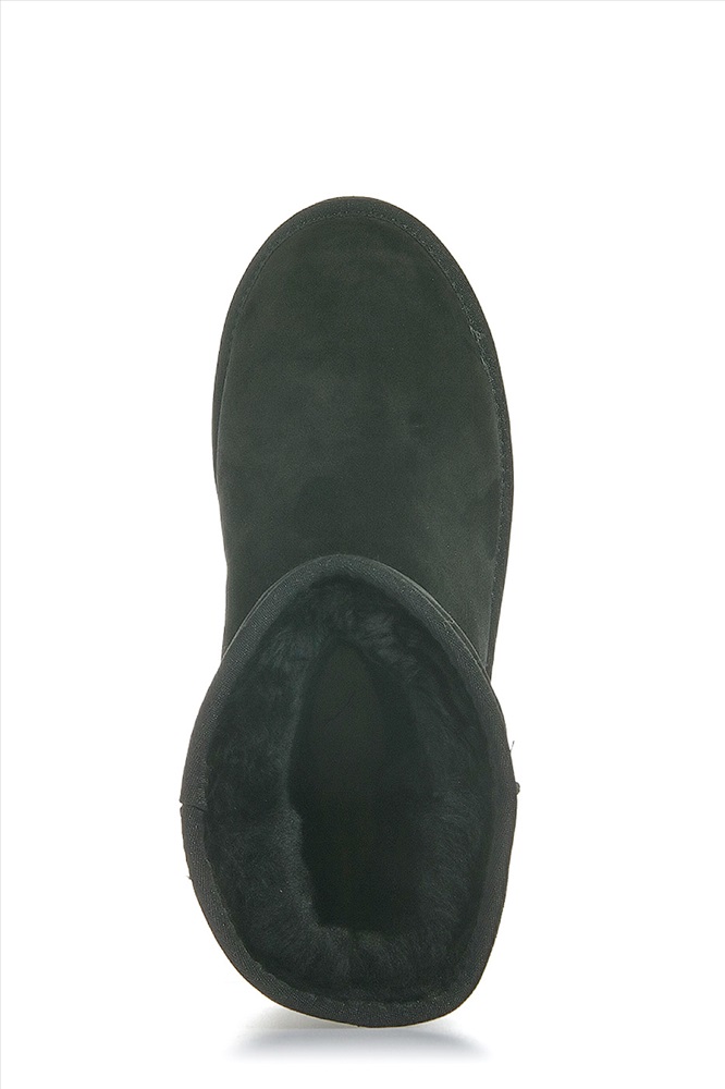 Унты выполнены из натуральной замши, верх оформлен объемными швами. Задник укреплен вставкой и дополнен логотипом бренда. Внутренняя отделка из натуральной шерсти.