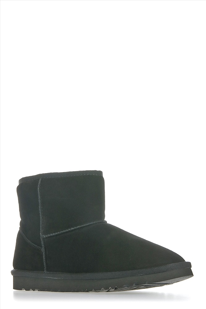 Унты выполнены из натуральной замши, верх оформлен объемными швами. Задник укреплен вставкой и дополнен логотипом бренда. Внутренняя отделка из натуральной шерсти.