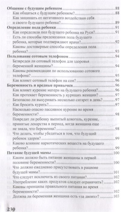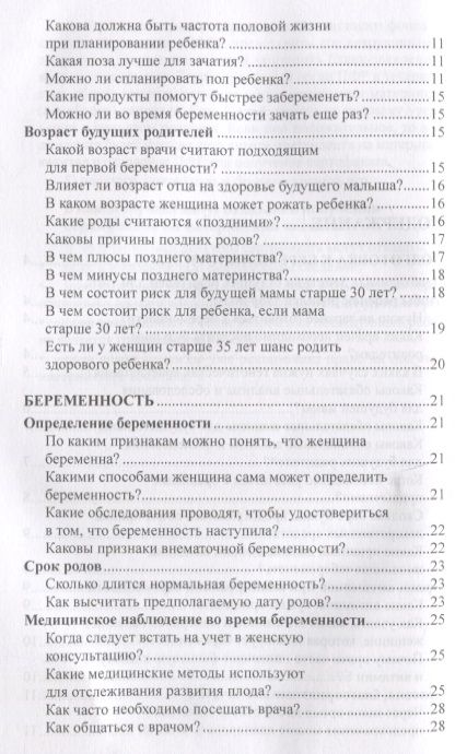 Кроме ответов на традиционные вопросы о планировании беременности, ее течении и родах, вы узнаете, можно ли женщине в этот период пользоваться сотовым телефоном, ходить в баню и летать на самолете. Получите ответы на вопросы, почему возникает боль во время родов, чем отличается спинальная анестезия от эпидуральной, в чем преимущества вертикальных родов.