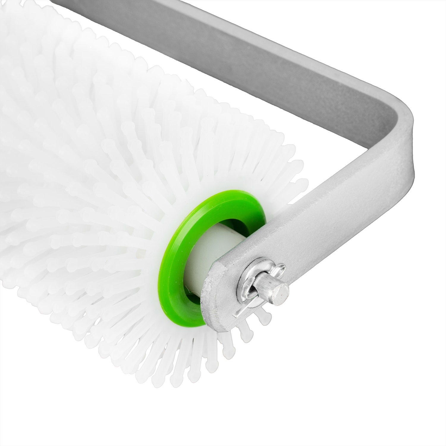 Игольчатый валик Сибртех 81104 длиной 600 мм используется для монтажа наливных полов. Позволяет удалять пузырьки воздуха из толщи еще жидкого покрытия путем его интенсивного прокатывания по распределенному на поверхности основы раствору. Валик длиной 600 мм можно использовать на поверхности большой площади. Длина иголок 13 мм оптимальна для покрытий небольшой толщины. Преимущества