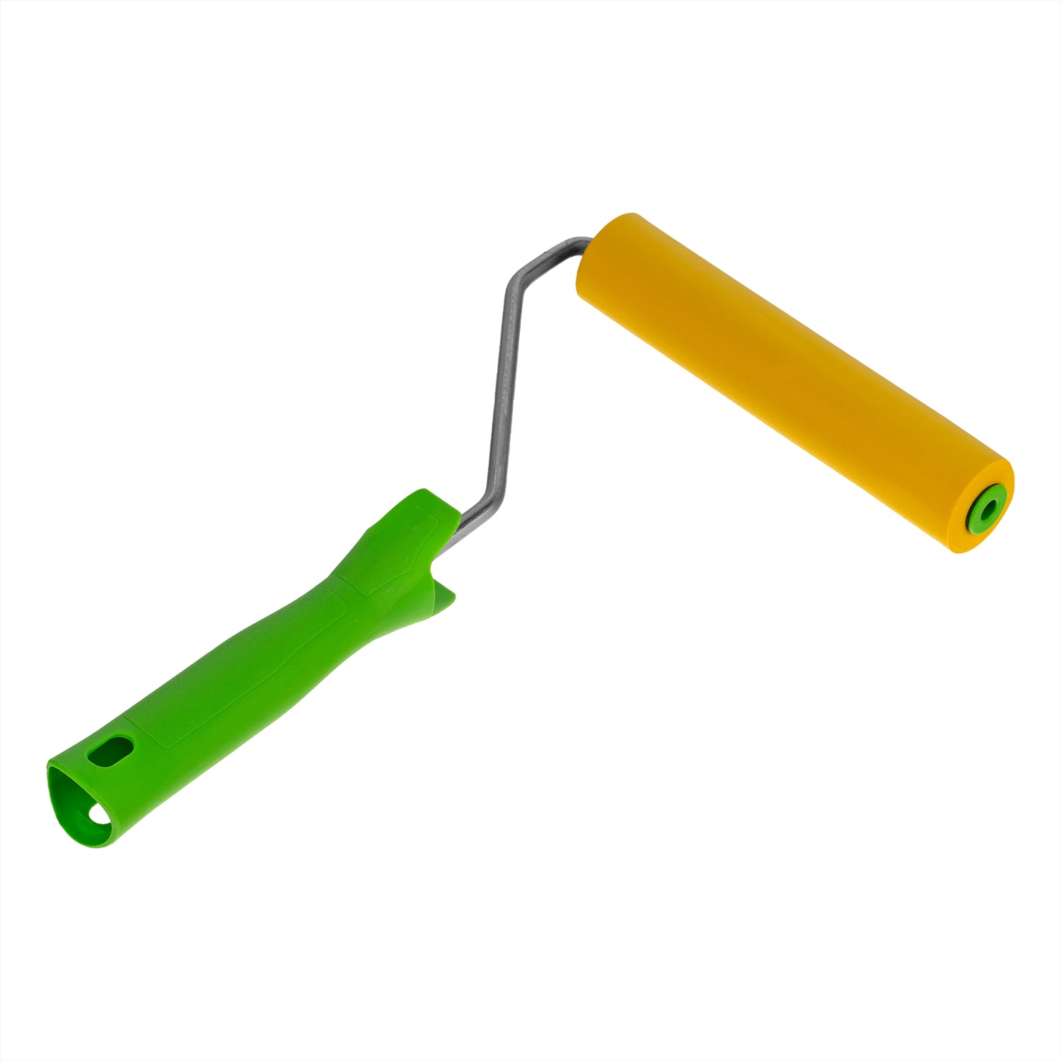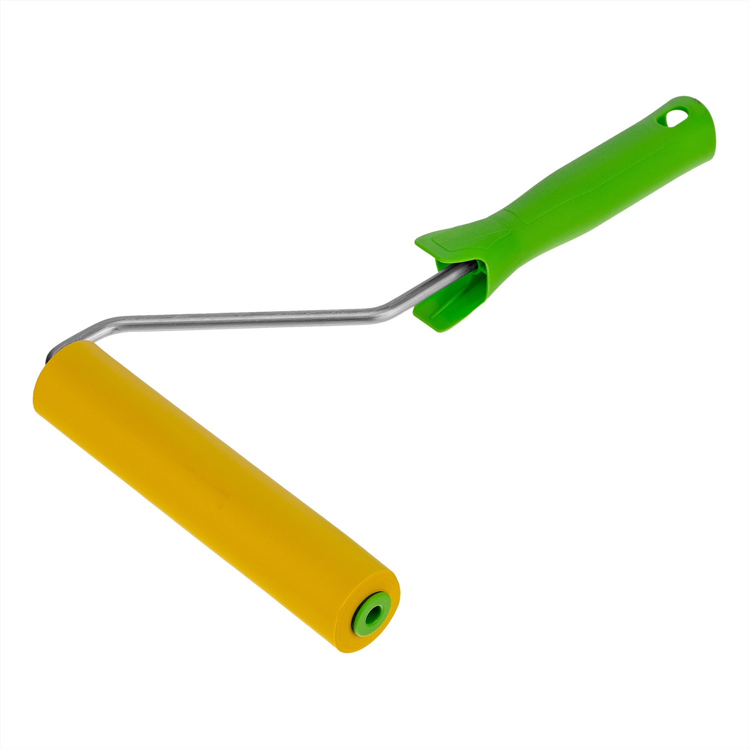 Резиновый прижимной валик Сибртех 81033 длиной 150 мм, с ручкой диаметром 6 мм, используется для ремонтно-строительных работ. Подходит для наклеивания всех видов обоев, а также других тонких листовых материалов. Позволяет быстро и равномерно разгладить полотно на стыках, удалив пузырьки воздуха. Преимущества