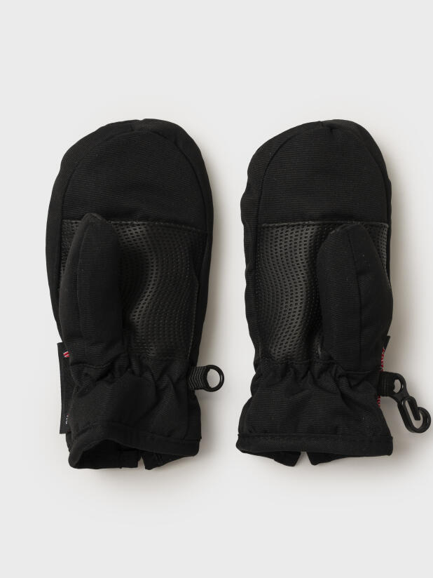 Манжета на резинке плотно фиксируется на запястье, не позволяя варежкам спадать или пропускать холодный воздух. Благодаря специальному креплению-петельке варежки можно соединять друг с другом и вешать на куртку или комбинезон — удобно и безопасно.