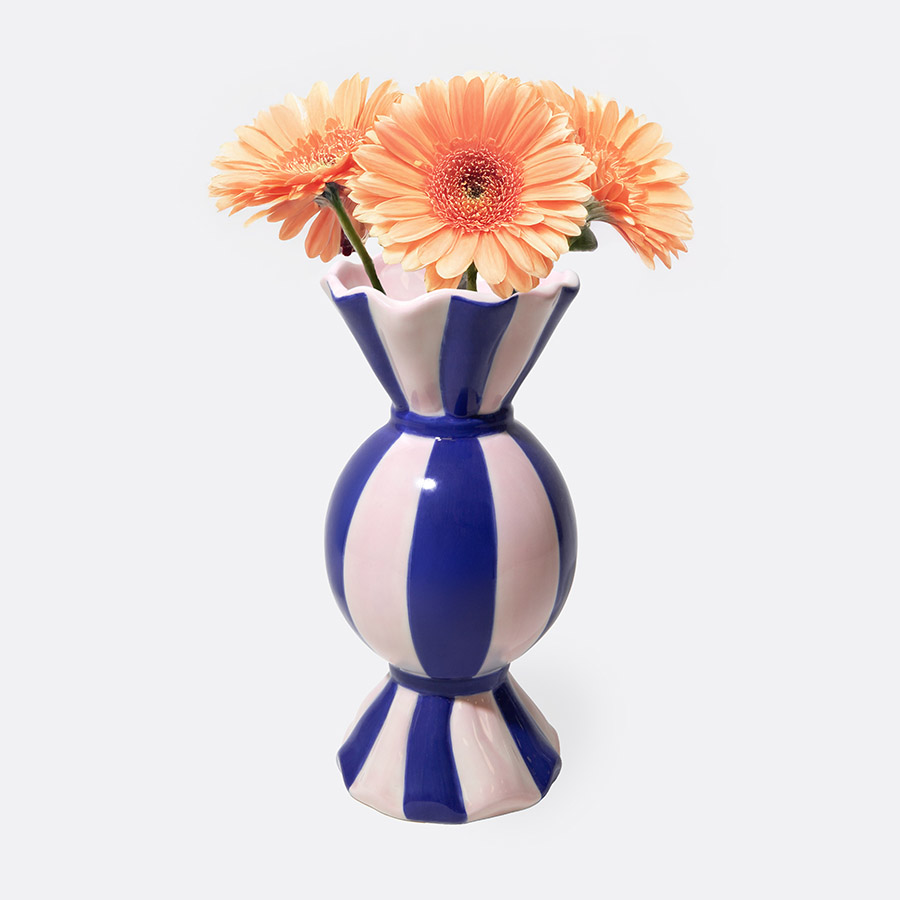 Коллекция: Funfair Название товара: Ваза Funfair, 20 см Артикул: DYVASFUN Материал: керамика Цвет: синий Размеры в упаковке (ШхГхВ): 13,5 х 13,5 х 22 см Размеры без упаковки (ШхГхВ): 9 х 9 х 20 см Вес в упаковке: 0,7 кг Вес без упаковки: 0,5 кг Украсьте вечер щепоткой карнавальной магии с оригинальной вазой из коллекции Funfair в форме большой конфеты. Эта вещица мгновенно переносит в мир, где пахнет сладкой ватой, слышен смех и горят разноцветные гирлянды. Особенности и преимущества: - Форма конфеты в обертке с эффектом скрученных кончиков вызывает мгновенную ностальгию и дарит эмоциональную связь с беззаботными моментами жизни. - Полосатая структура и глянцевая поверхность изделия создают уютное, мерцающее свечение. - Ваза будет одинаково хорошо смотреться на обеденном столе или на каминной полке в гостиной. - Изделие выполнено из экологичной керамики высокого качества, что гарантирует долгий срок службы. Материал: керамика. Размер: 9x9x20. Цвет: бело-синий Комментарии к товару