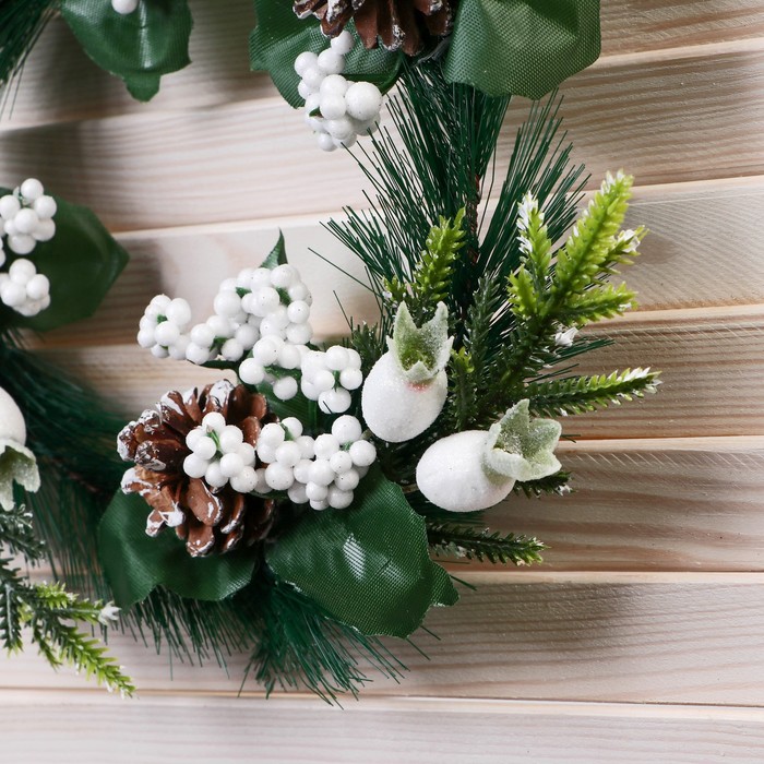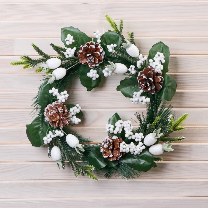 Прикоснитесь к праздничной магии с компактными украшениями. Венок диаметром 19 см, украшенный ягодками и шишками, идеально впишется в любой интерьер и создаст атмосферу уюта.