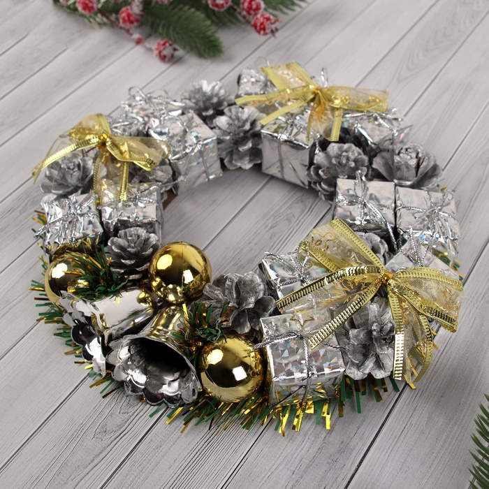 Венок новогодний d=22 см «Зимнее волшебство», с серебристыми бантами и шариками