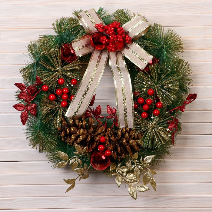 Венок новогодний d=37 см «Зимнее волшебство. Уютная сказка», с бантом