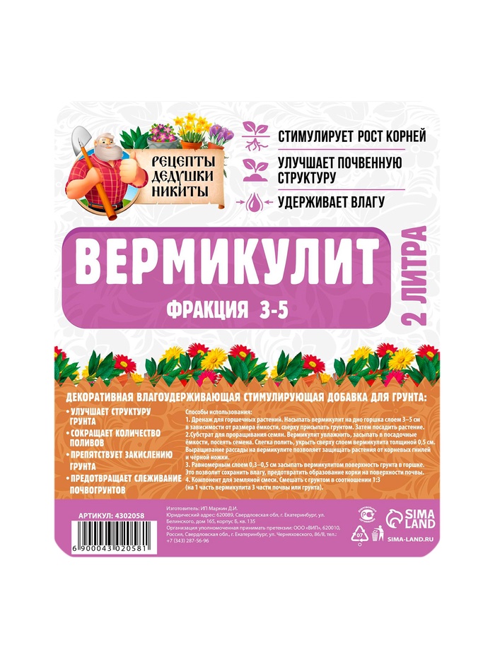 Вермикулит от ТМ "Рецепты Дедушки Никиты"