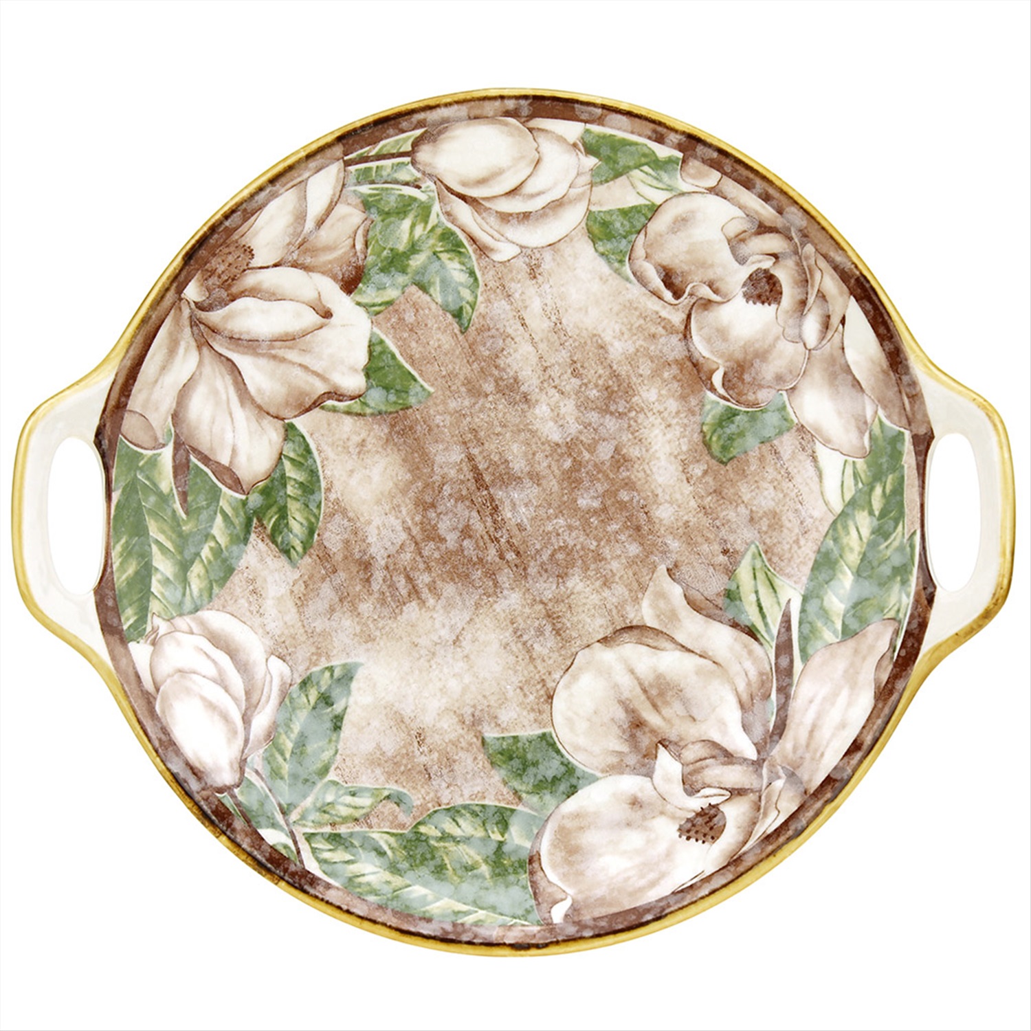 "Весенний сад" Блюдо фарфоровое 230х205х30мм, с ручками, подглазурная деколь (Китай)