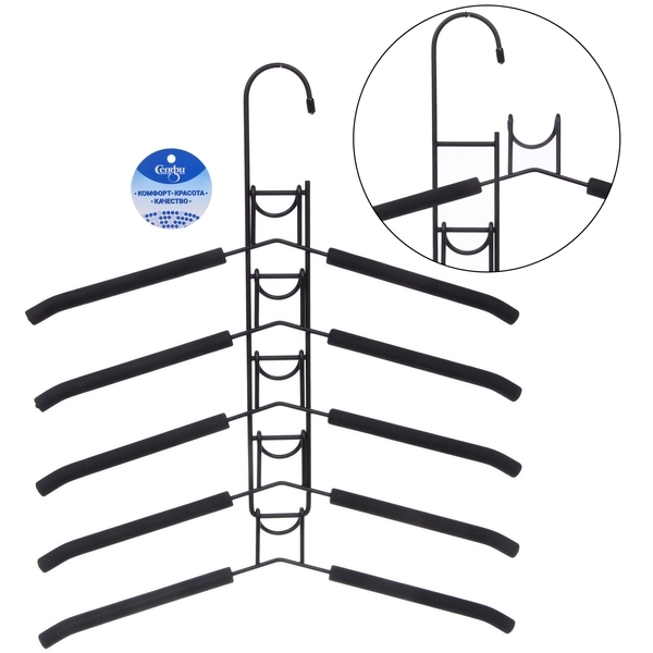 Бренд: Селфи; Индивидуальная упаковка: Без упаковки; Серия: ИДЕЯДОМА; Материал: Металл; ШтрихКод: 6931994464872; Страна происхождения: Китай; Тип: Вешалка - трансформер; Количество в коробке: 30; Набор: Нет; Цвет: Черный; Количество крючков: 5; Наличие клипсов: Нет