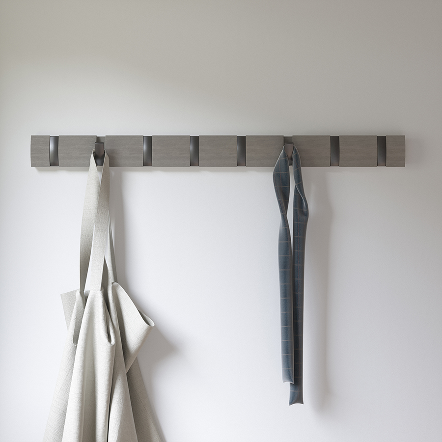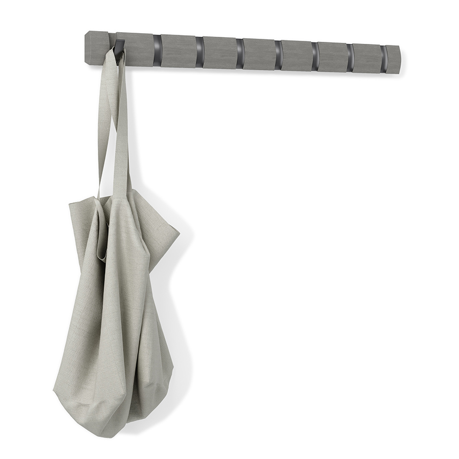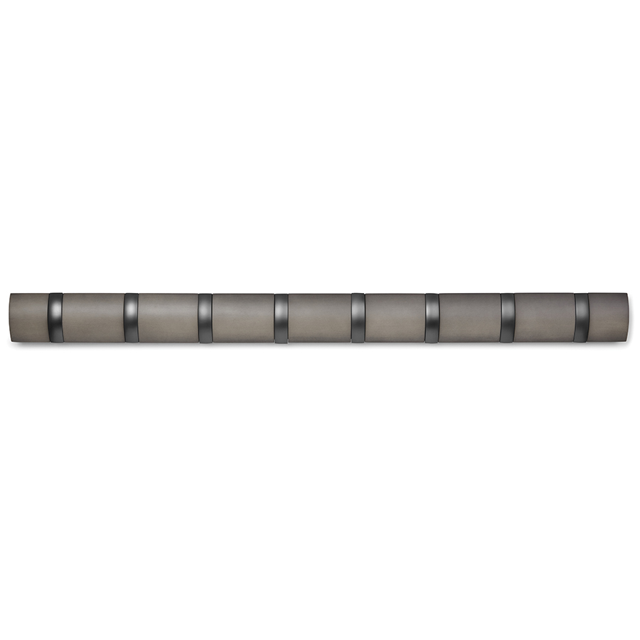 Бренд: UMBRA; Коллекция: Flip; Название товара: Вешалка настенная Flip, 81 см, 8 крючков, серая/олово; Артикул: 318858-1045; Материал: ясень, пластик ABS; Цвет: серый; Размеры в упаковке (ШхГхВ): 10 х 5 х 86 см; Размеры без упаковки (ШхГхВ): 81 х 3 х 6 см; Вес в упаковке: 0,95 кг; Вес без упаковки: 0,71 кг