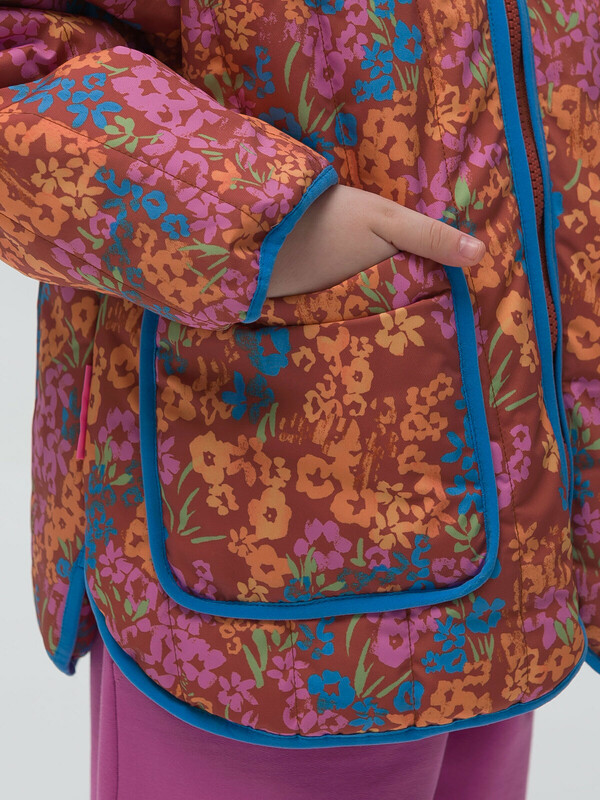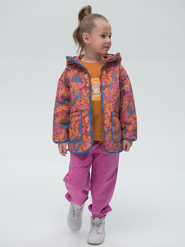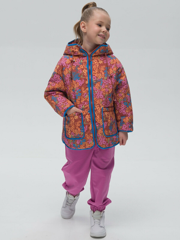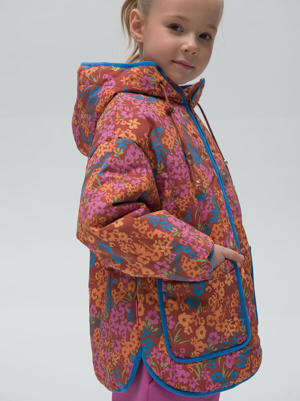 Удлиненная весенняя ветровка, стеганая вертикальными параллельными строчками с синтепоном 150 гр. Силуэт: прямой, мягкий оверсайз. Фигурная линия низа делает силуэт более мягким. Водоотталкивающая пропитка (DWR) наносится на внешнюю поверхность ткани и задерживает грязь и влагу снаружи. Дополнительный слой на внутренней стороне ткани не позволяет ребенку промокнуть. Наличие в составе ткани мембраны делает куртку максимально комфортной при носке. Хлопковый трикотаж в капюшоне и по стану - хорошая воздухопроницаемость, ребенок не вспотеет, в рукавах подклад из полиэстера - для удобства надевания. Капюшон двухшовный - хорошо сидит на голове, неотстегивающийся. Объём капюшона регулируется двухцветным шнуром с декором, который хочется потрогать, рассмотреть, поиграть. Центральная застежка на тракторную молнию с двумя пуллерами. Не заедает и удобно расстегивать! Тканевый стоппер защищает подбородок от зажима молнией. Прямой рукав слегка заужен книзу и окантован эластичной тесьмой. Накладные карманы на синтепоне - р Состав: 100%полиэстер + мембрана, подклад: 60%хлопок 40%полиэстер, sleeve подклад: 100%полиэстер, утеплитель: 100%полиэстер Комментарии к товару