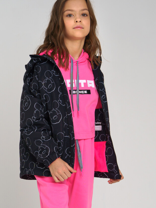 Ветровка с персонажем Disney из материала c ветро- и водоотталкивающей пропиткой. Мягкая подкладка из флиса. Рукава утеплены синтепоном для создания оптимального микроклимата в соответствии с температурным режимом ветровок на флисе. Несъемный капюшон c внутренней эластичной резинкой. Внутренняя ветрозащитная планка. Регулируемый низ куртки резинкой. Эластичная резинка по низу рукава. Два боковых кармана. Текстильный клапан для защиты подбородка при застегивании молнии. Светоотражающие элементы.