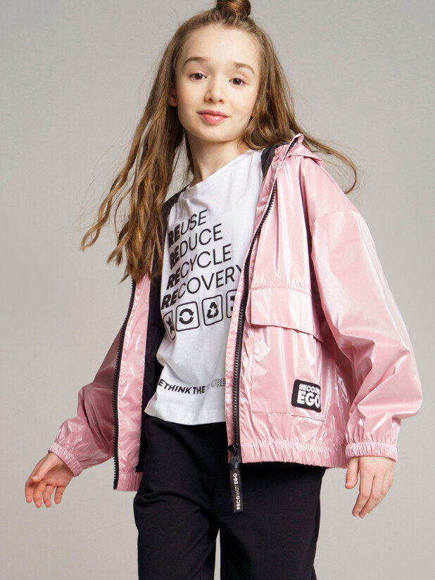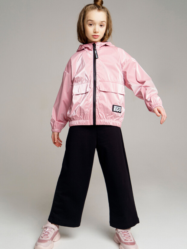 Ветровка из материала c ветро- и водоотталкивающей пропиткой. Гладкая подкладка таффета. Несъемный капюшон, регулируемый шнурком со стоппером. Внутренняя ветрозащитная планка. Регулируемый низ куртки резинкой. Эластичная резинка по низу рукава. Два боковых кармана. Текстильный клапан для защиты подбородка при застегивании молнии. Светоотражающие элементы.