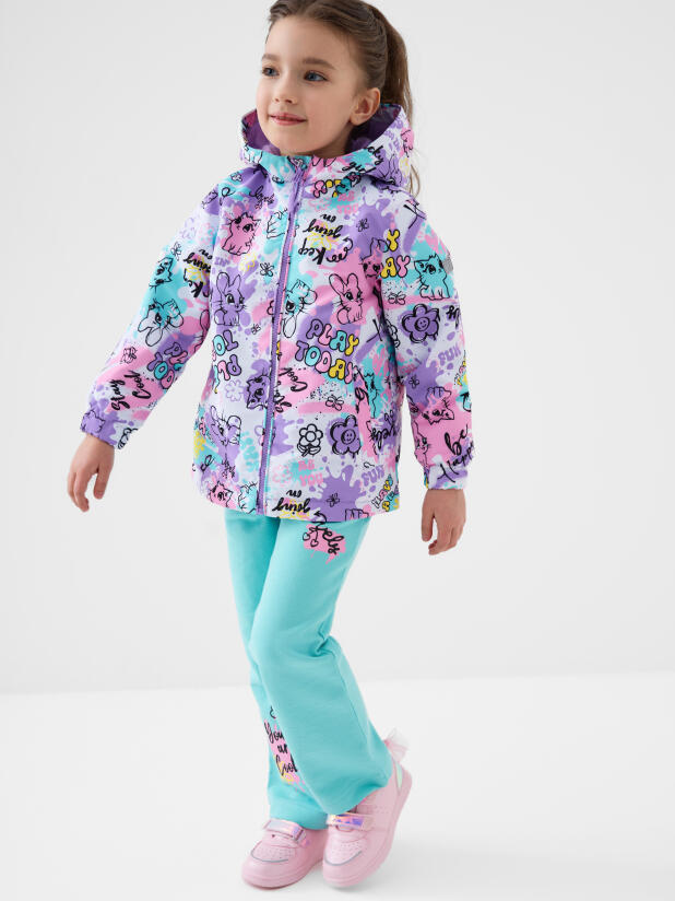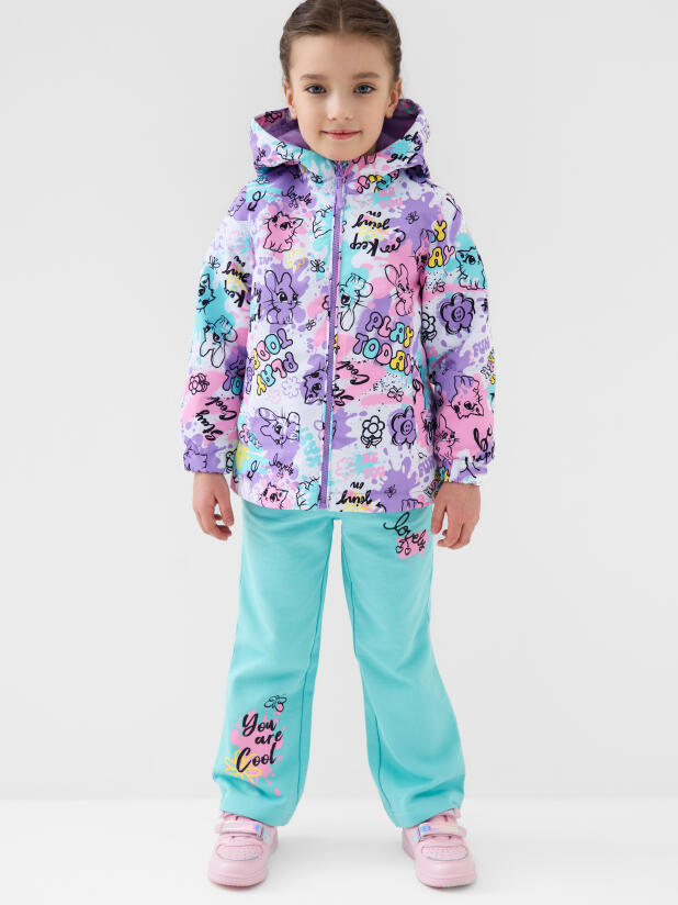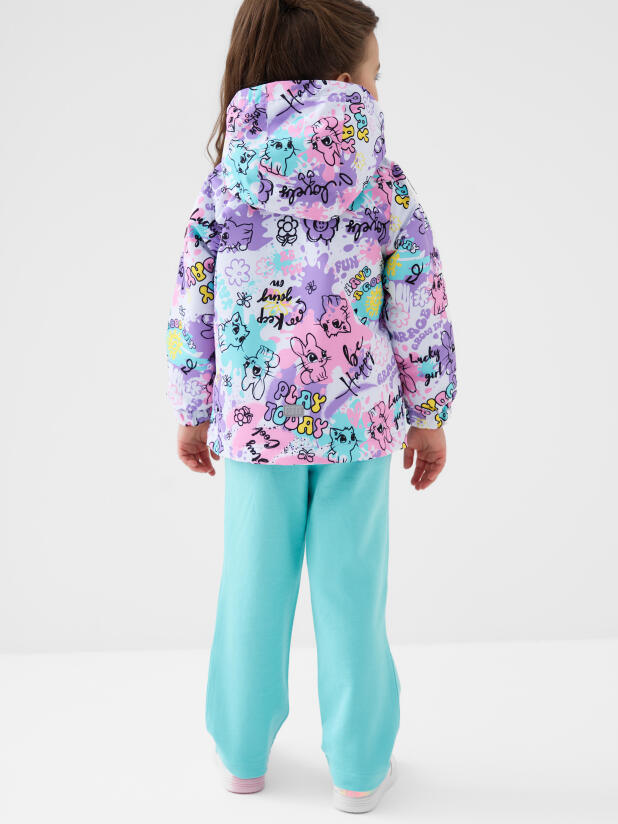 Ветровка детская для девочки. Температурный режим от +20С до +10С. Ткань с мембранным покрытием 5000х5000. Внутри флисовая подкладка. Капюшон несъемный с утяжкой стопперами. Боковые карманы на липучке. Внутренний карман на липучке. Манжеты на резинке. По низу изделия утяжка со стопперами. На рукаве и спинке есть светоотражающие элементы для безопасности в темное время суток.