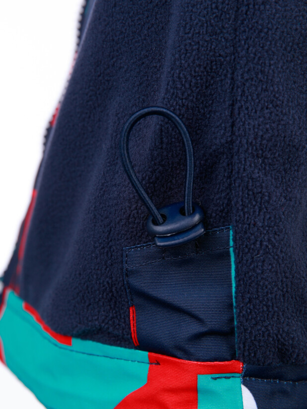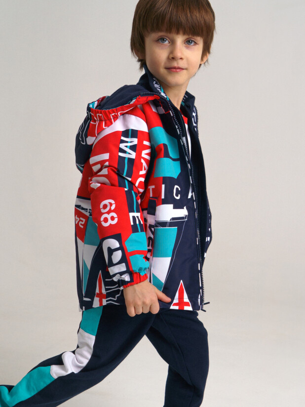 Ветровка из материала c ветро- и водоотталкивающей пропиткой. Мягкая подкладка из флиса. Несъемный капюшон. Внутренняя и внешняя ветрозащитные планки. Регулируемый низ куртки шнурком со стопперами. Эластичная резинка по низу рукава. Два боковых кармана. Светоотражающие элементы.