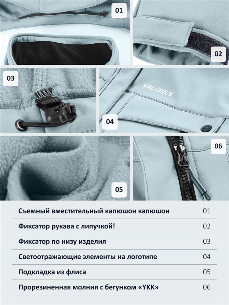 Производитель: VALIANLY; Артикул: 9566Br; Бренд: VALIANLY; Пол: Женский; Сезон: Осень весна; Страна производителя: Китай; Тип: Ветровки; Цвет: Бирюзовый; Рост: от 155 до 195; Диапазон температур: от 0° до + 15°; Водонепроницаемость: 10 000 мм; Комплектация: Ветровка/Капюшон; Состав: 95% Полиэстер 5% Спандекс; Материал: Softshell, Мембранные материалы, Полиэстер, Тефлон; Материал подкладки: 100% Полиэстер/флис; Материал подкладки воротника: 100% Полиэстер/флис; Фактура материала: плотная; Бренд фурнитуры: YKK*; Покрой: Полуприлегающий/Свободный; Длина одежды: до бедра; Тип рукава: Длинный; Внутренние карманы: Нет; Тип кармана: Прорезной на молнии; Воротник: стояче-отложной; Фиксаторы: На капюшоне/по низу/на рукавах; Опции капюшона: Съемный; Декоративные элементы: Хлястик, Светоотражающие элементы, Капюшон, Карманы; Внутренние швы: Прошиты; Вид застежки: Молния, Кнопки, Клапан; Особенности модели: family look, ветрозащита, водоотталкивающий материал, гипоаллергенный материал, с начесом, утягивающая модель; Вид одежды: Свободная, утепленная модель; Стиль: Повседневный, Спортивный; Рисунок: Однотонный, Логотип, Надписи; Коллекция: Весна-Лето 2025; Тренд: уличная мода; Тип упаковки: Пакет; Цвета: бирюзовый, черный, розовый, малиновый, горчичный, синий; Габариты (ДхШхВ): 56 x 38 x 5 см; Вес: 1 кг