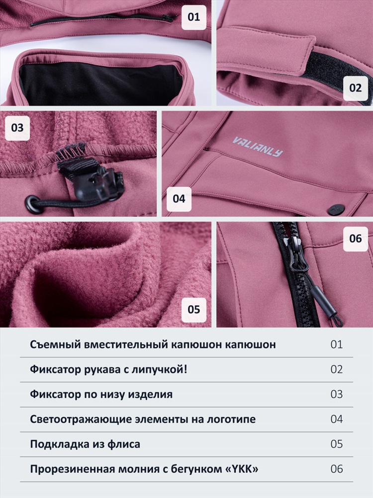 Производитель: VALIANLY; Артикул: 9566M; Бренд: VALIANLY; Пол: Женский; Сезон: Осень весна; Страна производителя: Китай; Тип: Ветровки; Цвет: Малиновый; Рост: от 155 до 195; Диапазон температур: от 0° до + 15°; Водонепроницаемость: 10 000 мм; Комплектация: Ветровка/Капюшон; Состав: 95% Полиэстер 5% Спандекс; Материал: Softshell, Мембранные материалы, Полиэстер, Тефлон; Материал подкладки: 100% Полиэстер/флис; Материал подкладки воротника: 100% Полиэстер/флис; Фактура материала: плотная; Бренд фурнитуры: YKK*; Покрой: Полуприлегающий/Свободный; Длина одежды: до бедра; Тип рукава: Длинный; Внутренние карманы: Нет; Тип кармана: Прорезной на молнии; Воротник: стояче-отложной; Фиксаторы: На капюшоне/по низу/на рукавах; Опции капюшона: Съемный; Декоративные элементы: Хлястик, Светоотражающие элементы, Капюшон, Карманы; Внутренние швы: Прошиты; Вид застежки: Молния, Кнопки, Клапан; Особенности модели: family look, ветрозащита, водоотталкивающий материал, гипоаллергенный материал, с начесом, утягивающая модель; Вид одежды: Свободная, утепленная модель; Стиль: Повседневный, Спортивный; Рисунок: Однотонный, Логотип, Надписи; Коллекция: Весна-Лето 2025; Тренд: уличная мода; Тип упаковки: Пакет; Цвета: бирюзовый, черный, розовый, малиновый, горчичный, синий; Габариты (ДхШхВ): 56 x 38 x 5 см; Вес: 1 кг
