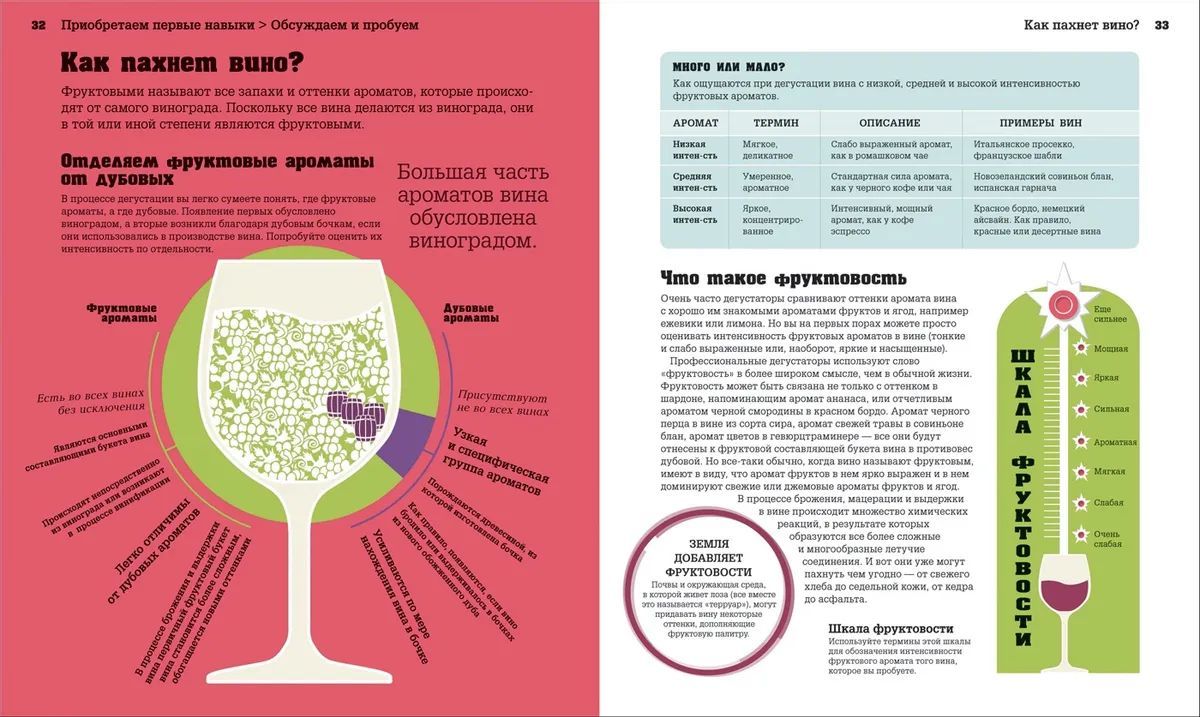 Эта книга предлагает совершенно новый подход к изучению вина. Автор не только подробно объясняет основные понятия и даже нюансы, но и наглядно демонстрирует весь материал с помощью доходчивой инфографики, несложных таблиц и понятных схем. Это значительно облегчает изучение всего спектра белых, розовых и красных вин, а также основных сортов винограда и винодельческих регионов мира.