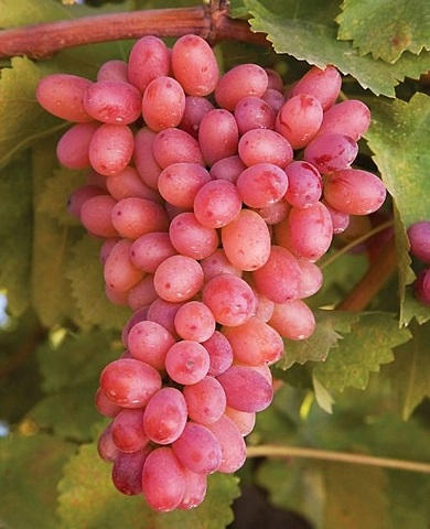 Аромат – мускатный, вкус – сладкий, ягоды – настоящие красавицы: розовые, крупные, массой 8–10 г, округло-овальные. Даже при неблагоприятных условиях не трескаются и не мельчают. Созревает виноград за 110–115 дней, к этому времени грозди набирают внушительную массу – до 1,2 кг. Сорт отличается отличной зимостойкостью до −25 °С.