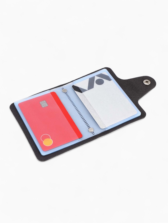 Визитница на кнопке, 12 карт, однотонная, чёрная