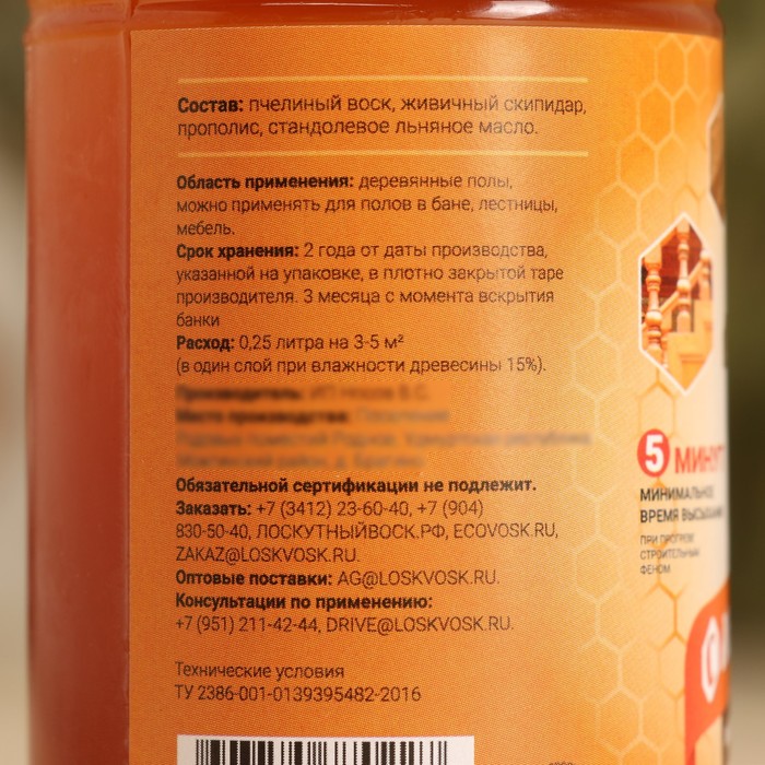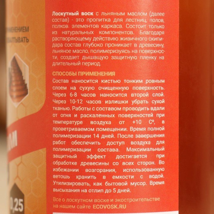 Влаго-биозащитная пропитка "Лоскутный воск" "под кисть", с льняным маслом 0,25л