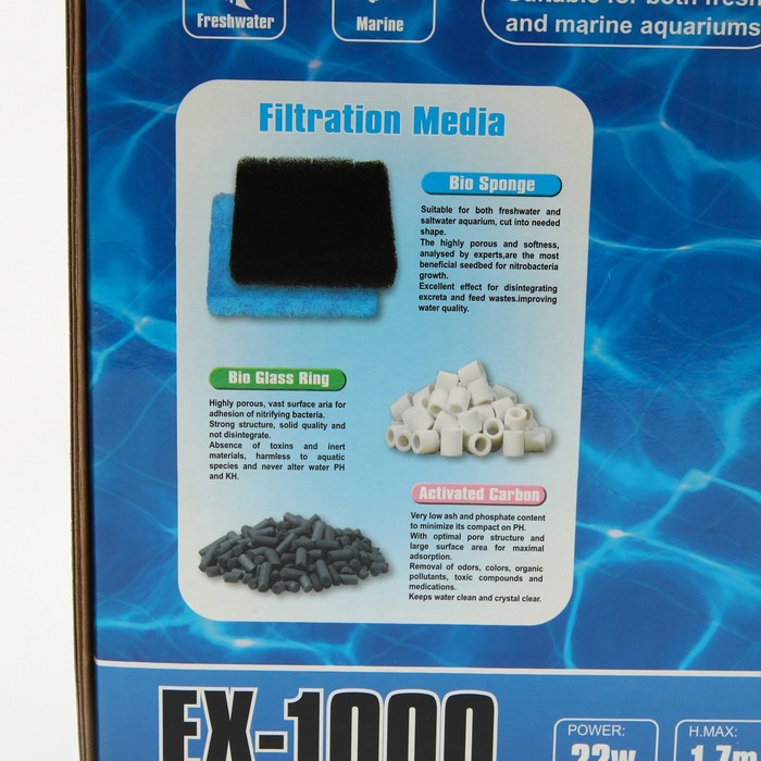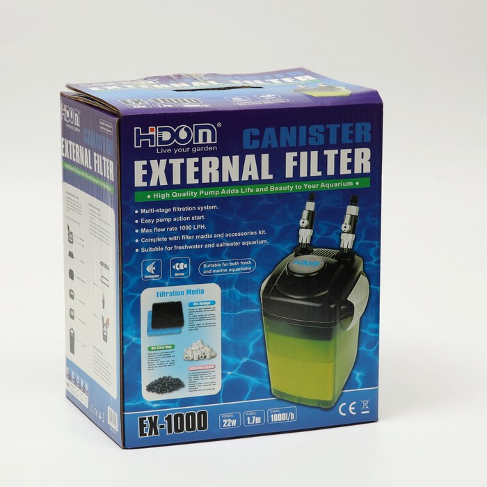 Производитель: Hidom; Габариты: 31 x 25 x 38; Страна: Китай; В боксе: 2 шт; Состав: Керамика, пластик; Материалы: керамика, пластик; Фасовка: по 1 шт; Индивидуальная упаковка: Картонная коробка; Сертификат: ЕАС; Цвет: Чёрный; Мощность, Вт: 22; Объём аквариума, л: 200; Производительность, л/ч: 1000; Вид: Внешний; Фиксированная цена: Да