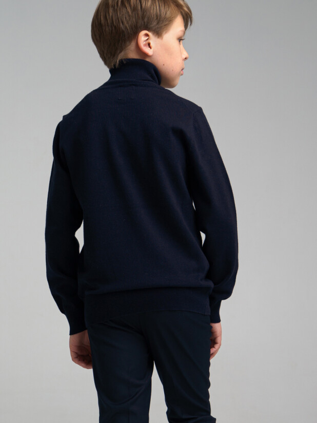 Модная темно-синяя трикотажная водолазка в школу для мальчика от PlayToday — практичный выбор на каждый день. Комфорт, тепло и универсальность — всё, что нужно для спокойного школьного дня.