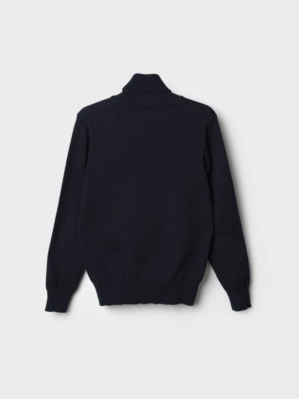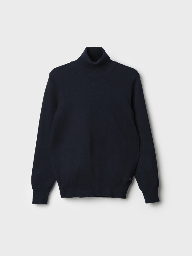 Прямой силуэт не сковывает движений, а горловина мягко облегает шею и хорошо держит форму. Такая темно-синяя детская водолазка с высоким воротом для мальчиков легко комбинируется с рубашками, джемперами, пиджаками, жилетами и школьной формой в целом.
